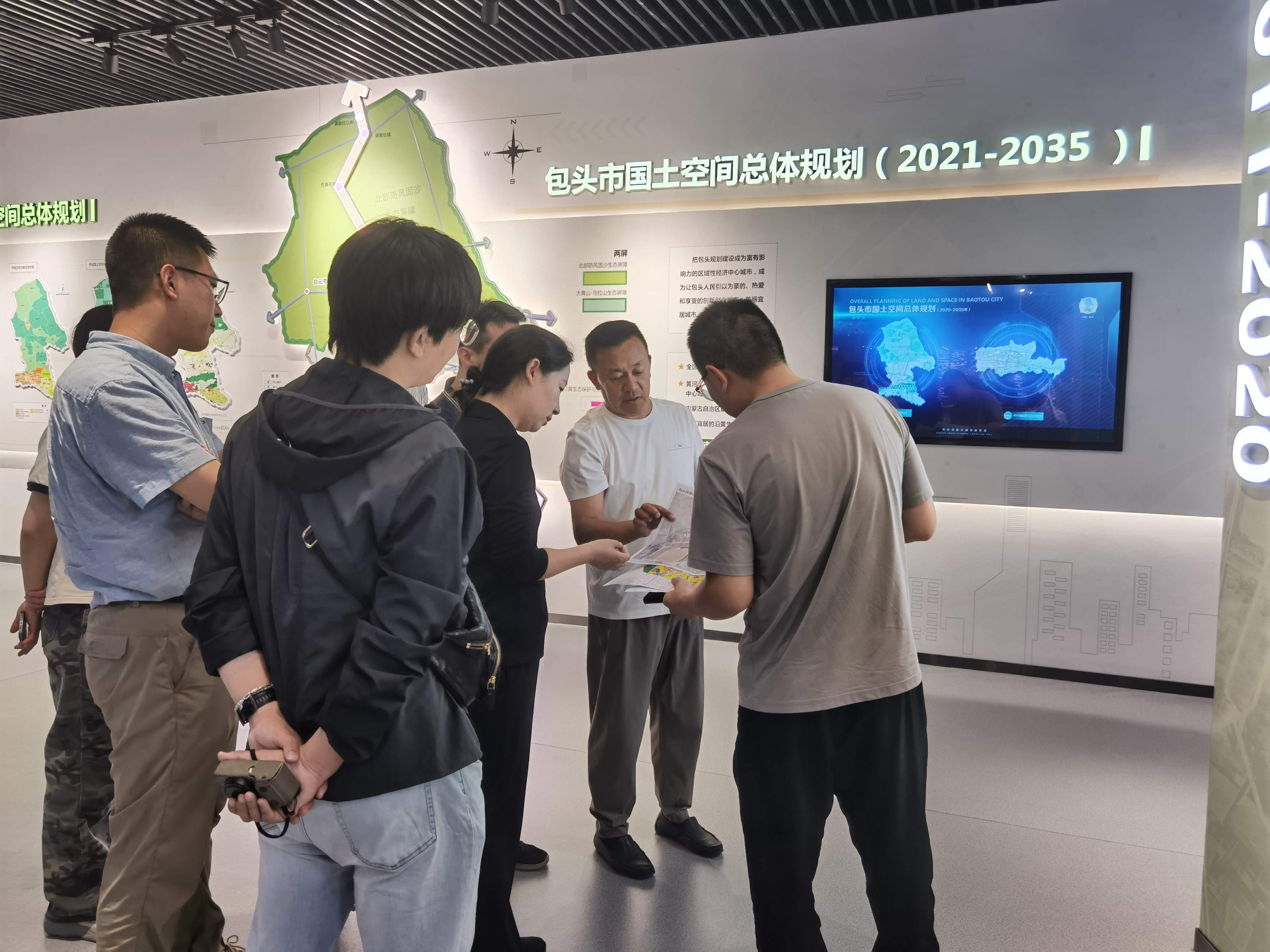 调研组先后考察了活动断层野外探槽剖面、活动断层成果应用室、包头市建筑设计研究院以及包头市城市规划展览馆,与规划、设计技术人员交流活动断层成果如何深度应用于城市规划和工程设计,并详细了解活动断层成果应用的典型做法。